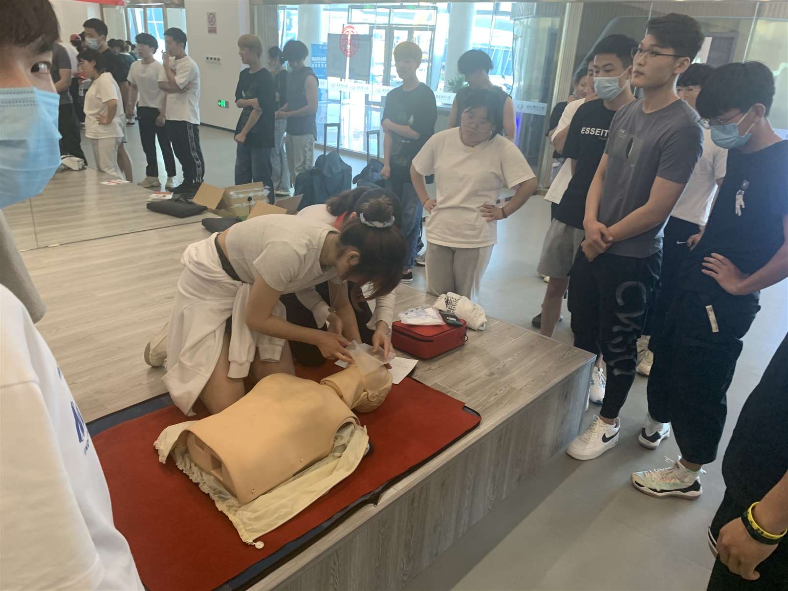 2、培训内容:现场评估、CPR救护实践操作、包扎搬运、除颤仪使用等;